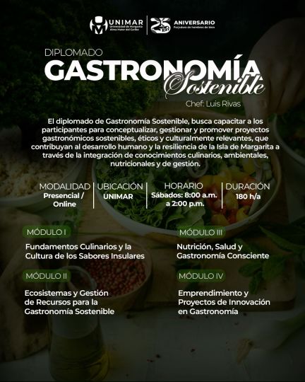 Está dirigido a chefs, emprendedores, profesionales del turismo, nutricionistas, estudiantes y amantes de la alimentación consciente. Te invita a explorar la gastronomía como herramienta de transformación social, integrando saberes culinarios, ambientales y culturales para fortalecer la resiliencia de la Isla de Margarita.
