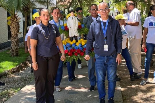 El acto inició con la Adoración Eucarística, seguida de un recorrido por los distintos departamentos del campus universitario con la imagen de San José Gregorio Hernández, símbolo de fe y devoción para la comunidad venezolana.